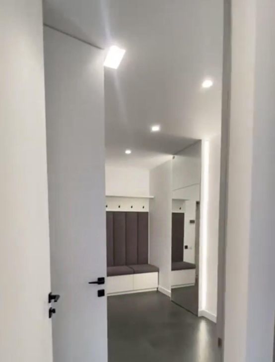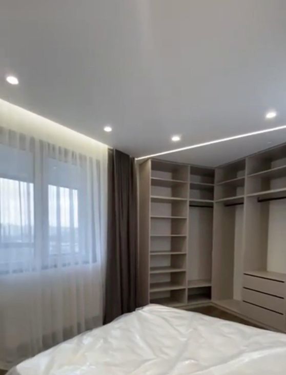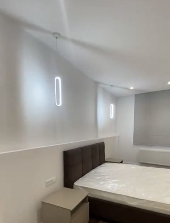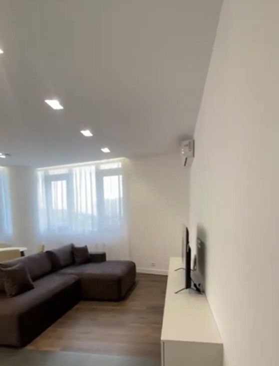 Квартира оформлена с дизайнерским ремонтом, что создает уютную и современную атмосферу. Высокие потолки 2.85 метра добавляют ощущение простора. В квартире есть все необходимое: кондиционер, телевизор, холодильник, посудомоечная и стиральная машины. Мебель на кухне и в комнатах полностью укомплектована. Санузел совмещенный, оборудован современной душевой кабиной. Изюминка квартиры — балкон, где можно насладиться свежим воздухом и видом на окрестности.