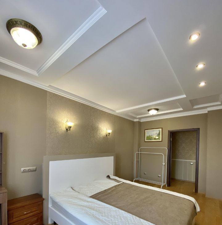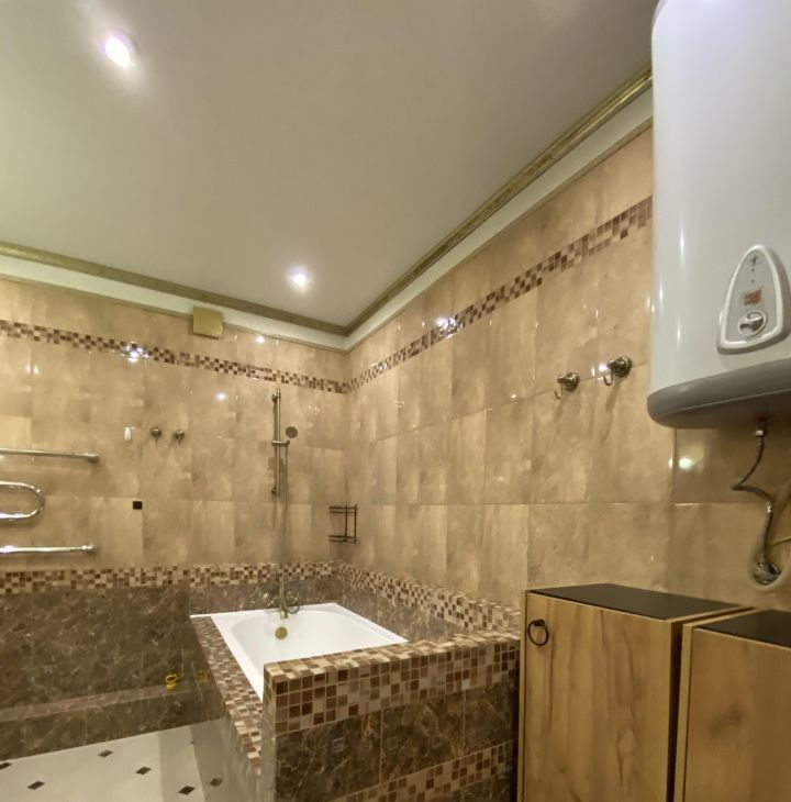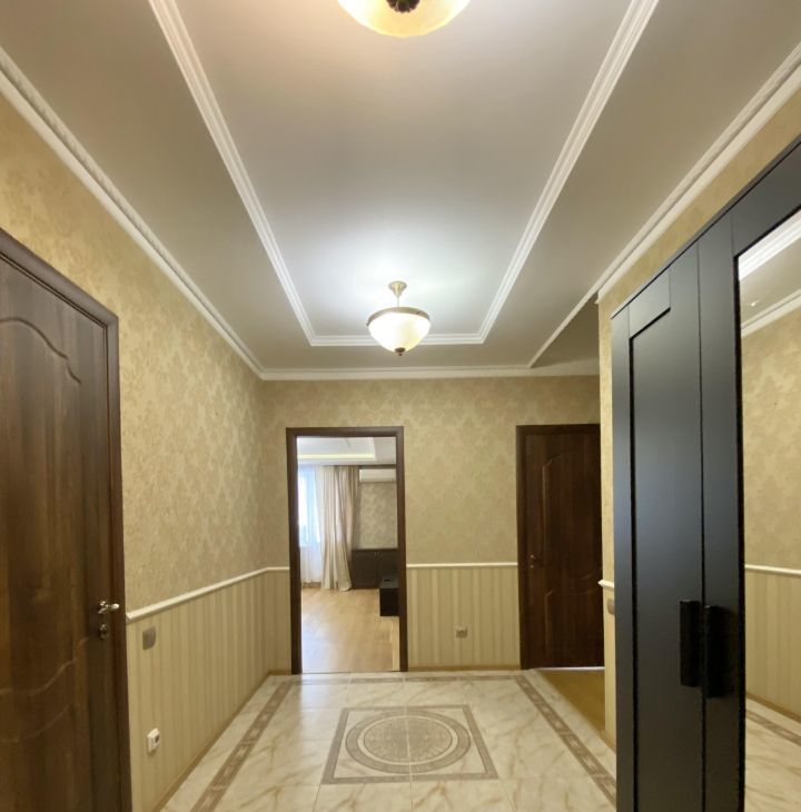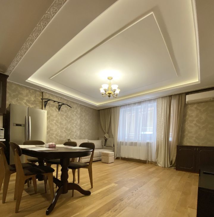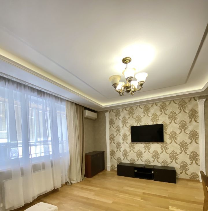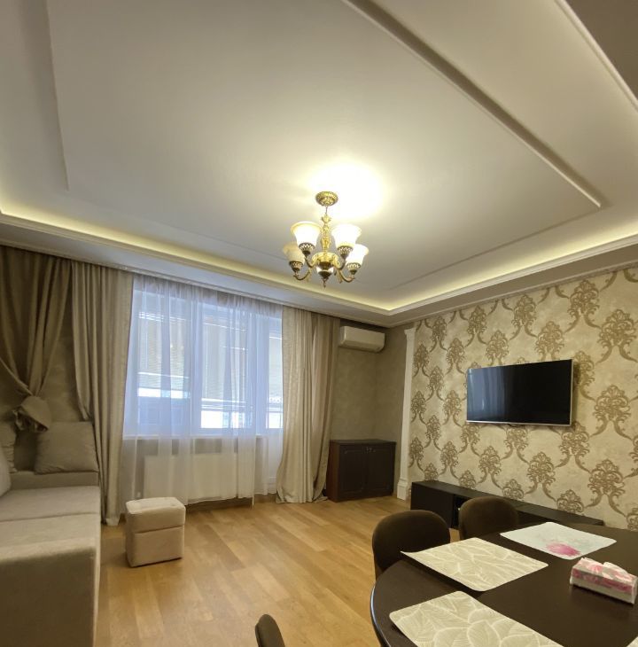 В квартире выполнен хороший ремонт,из качественных материалов,на полу добротный паркет,двухуровневые потолки,при входе расположена многофункциональная гардеробная,большой просторный санузел.В распоряжении арендаторов есть вся необходимая мебель на кухне и в комнатах. Также квартира оборудована современной техникой: кондиционер, холодильник, посудомоечная машина, телевизор и стиральная машина. В ванной комнате установлена ванна, что позволит вам расслабиться после долгого дня.