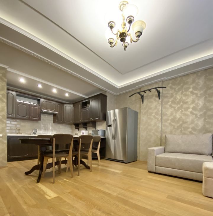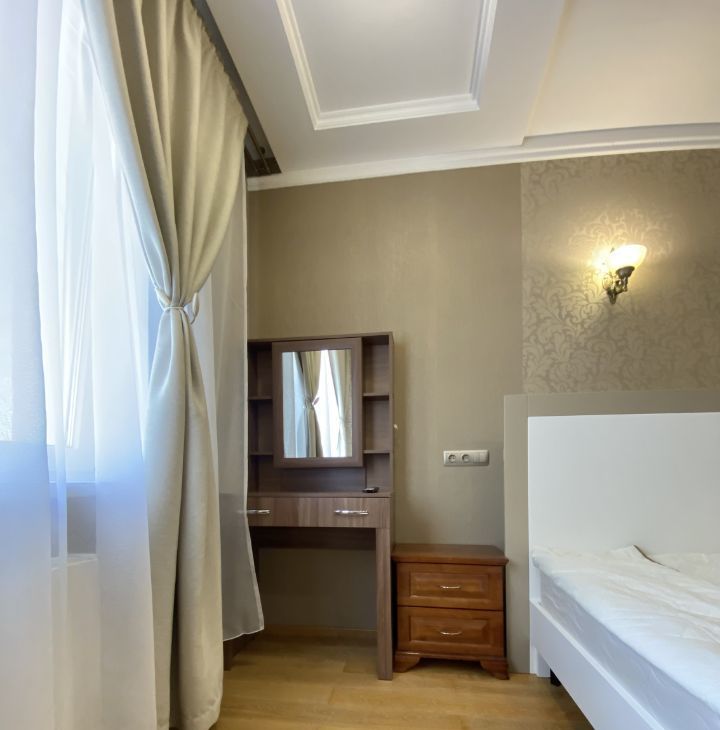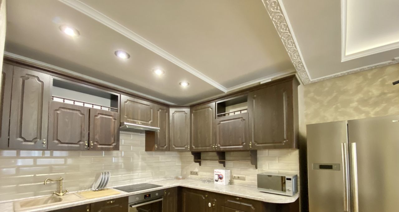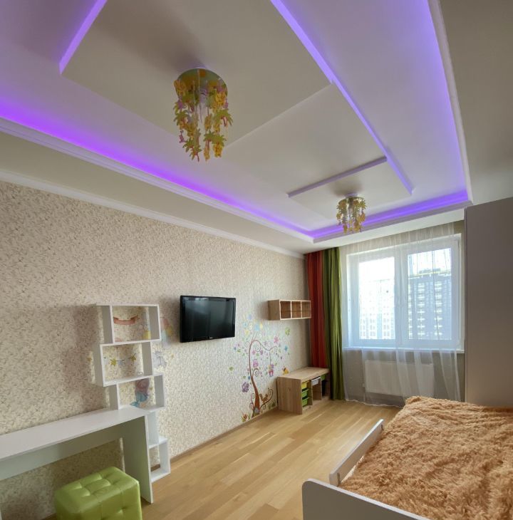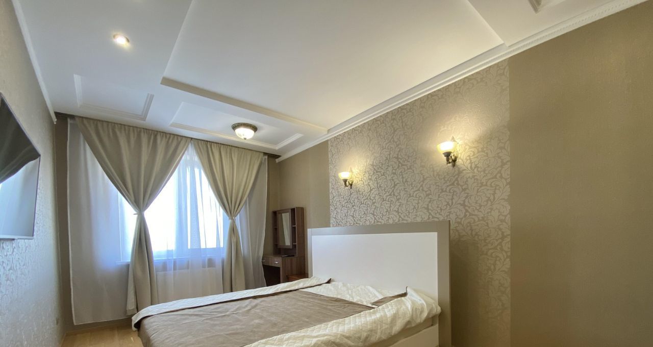 В квартире выполнен хороший ремонт,из качественных материалов,на полу добротный паркет,двухуровневые потолки,при входе расположена многофункциональная гардеробная,большой просторный санузел.В распоряжении арендаторов есть вся необходимая мебель на кухне и в комнатах. Также квартира оборудована современной техникой: кондиционер, холодильник, посудомоечная машина, телевизор и стиральная машина. В ванной комнате установлена ванна, что позволит вам расслабиться после долгого дня.