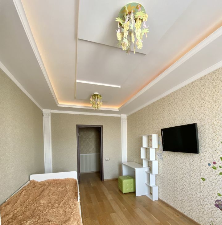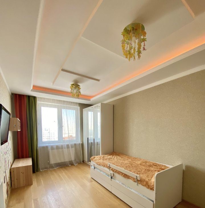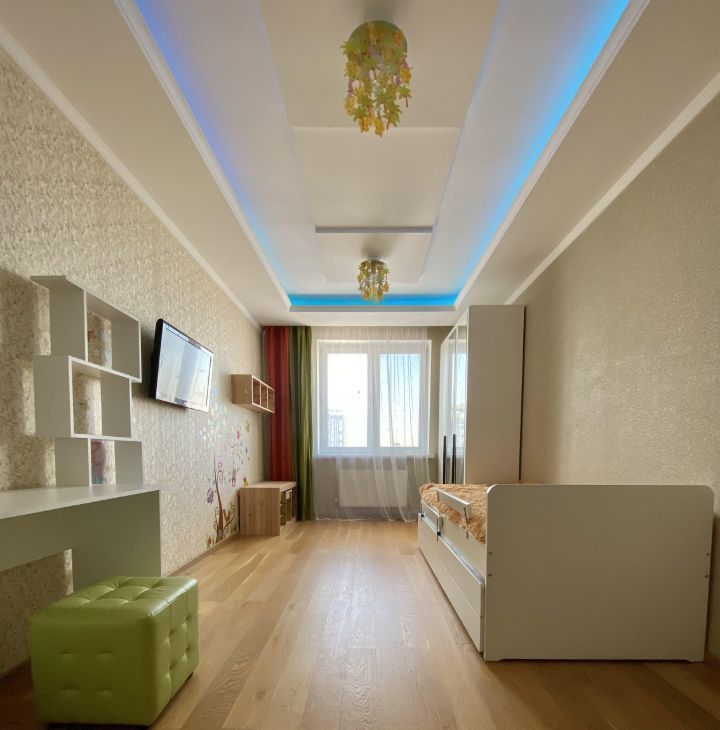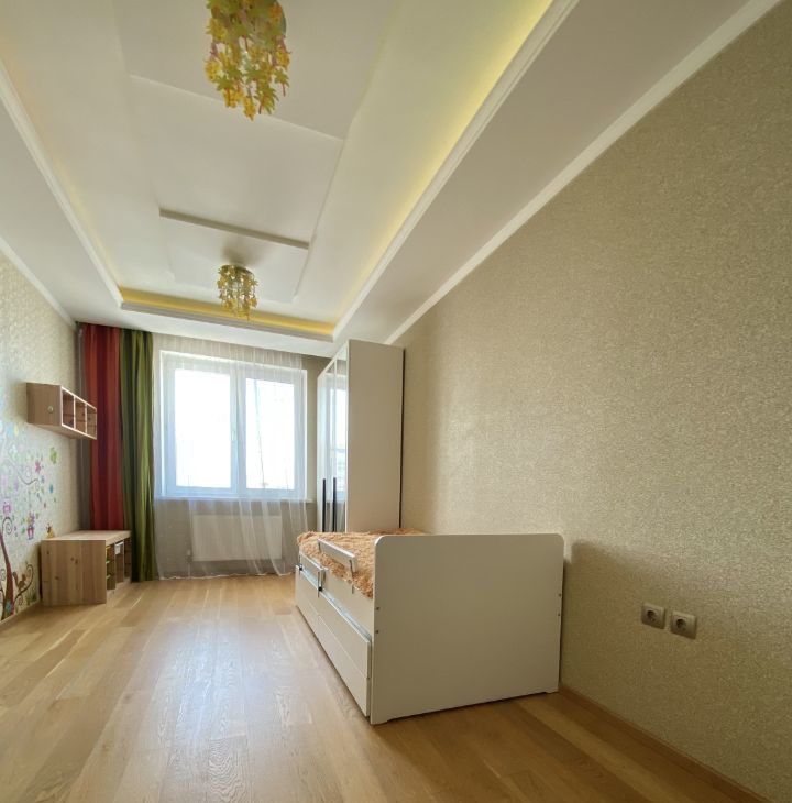 Квартира расположена на 13-м этаже,откуда открывается потрясающий вид на весь город,красивые закаты.Жилая площадь составляет 56 кв. м, а кухня — 12 кв. м, что позволит вам комфортно разместиться всей семьёй. Дом был построен в 2014 году и выполнен из кирпича, что обеспечивает отличную звукоизоляцию и тепло. Высота потолков — 2.8 метра.