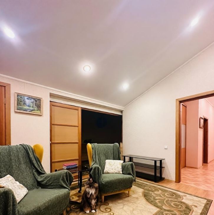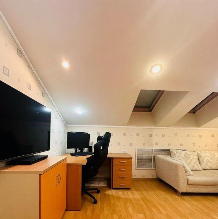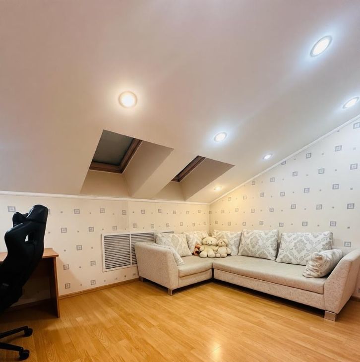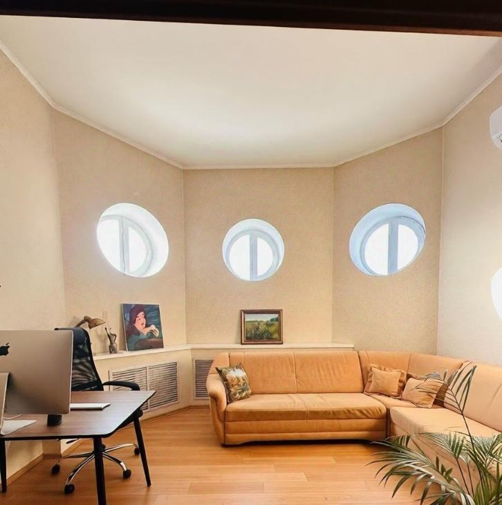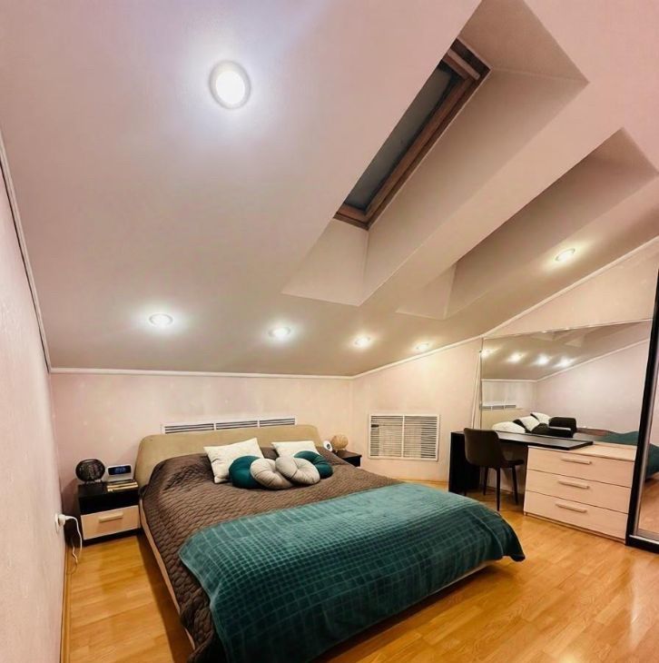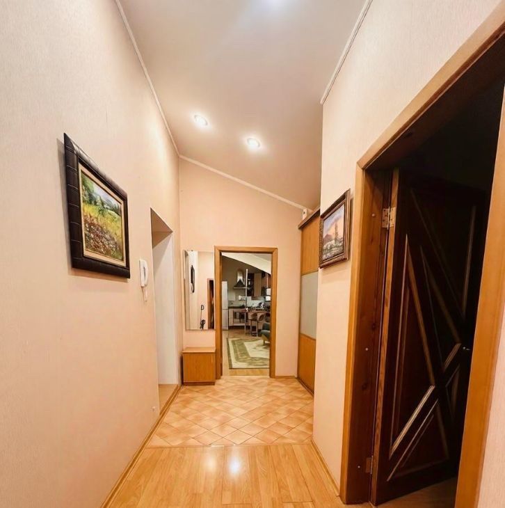 94 кв. м, 6 этаж (последний) с мансардными окнами — потолки 4,5 м. Из окон- панорамный вид на Корстон и парк Горького.