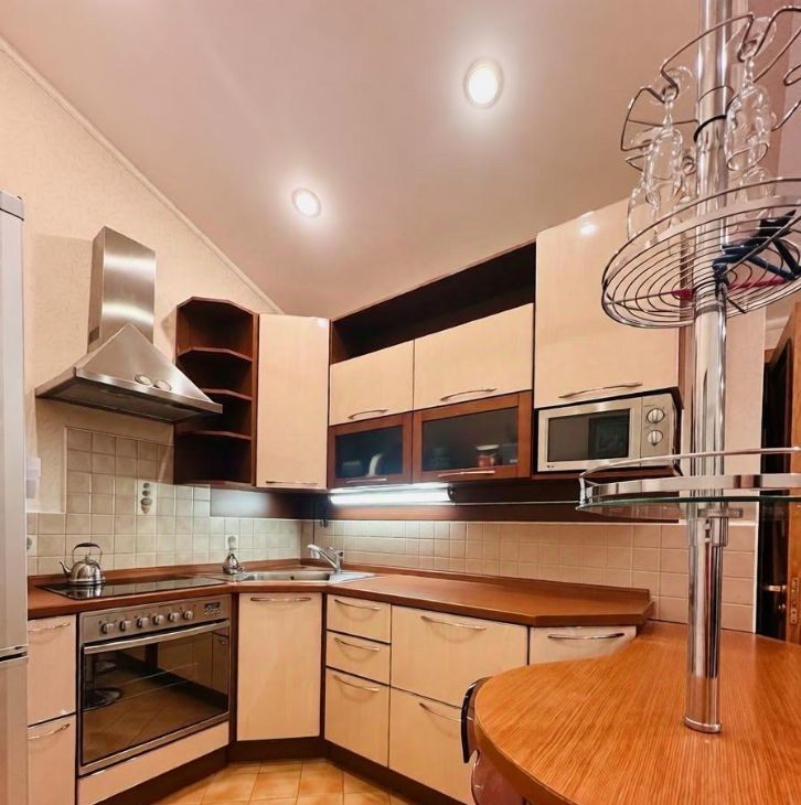 Добротный ремонт: двери из натурального дерева, встроенная кухня с техникой, дорогая качественная мебель. Вся мебель и техника остаются новым владельцам!