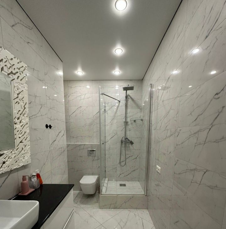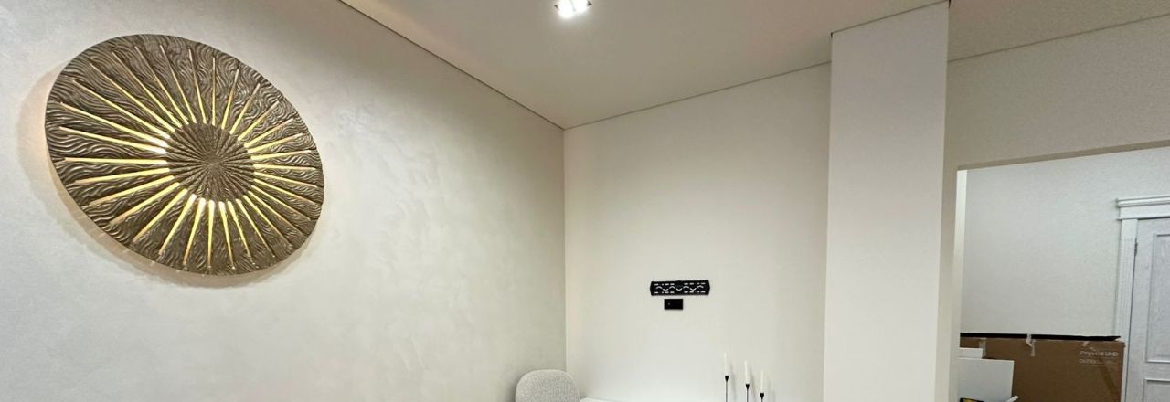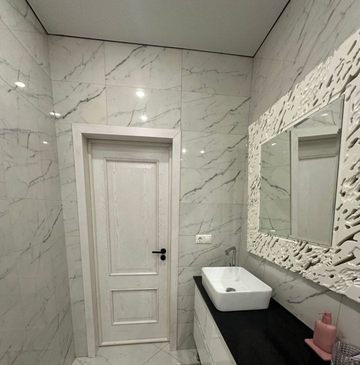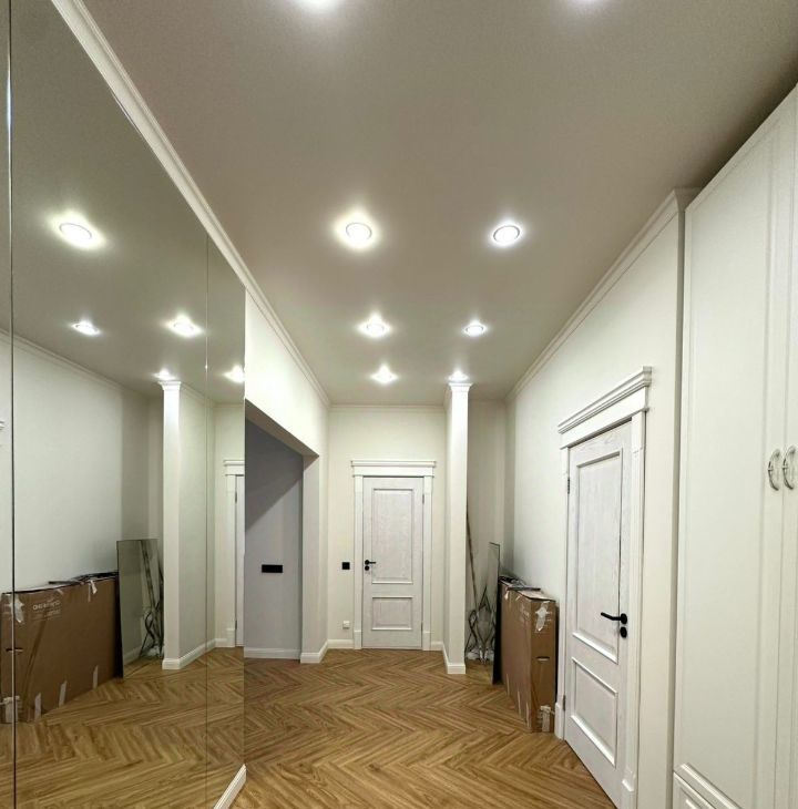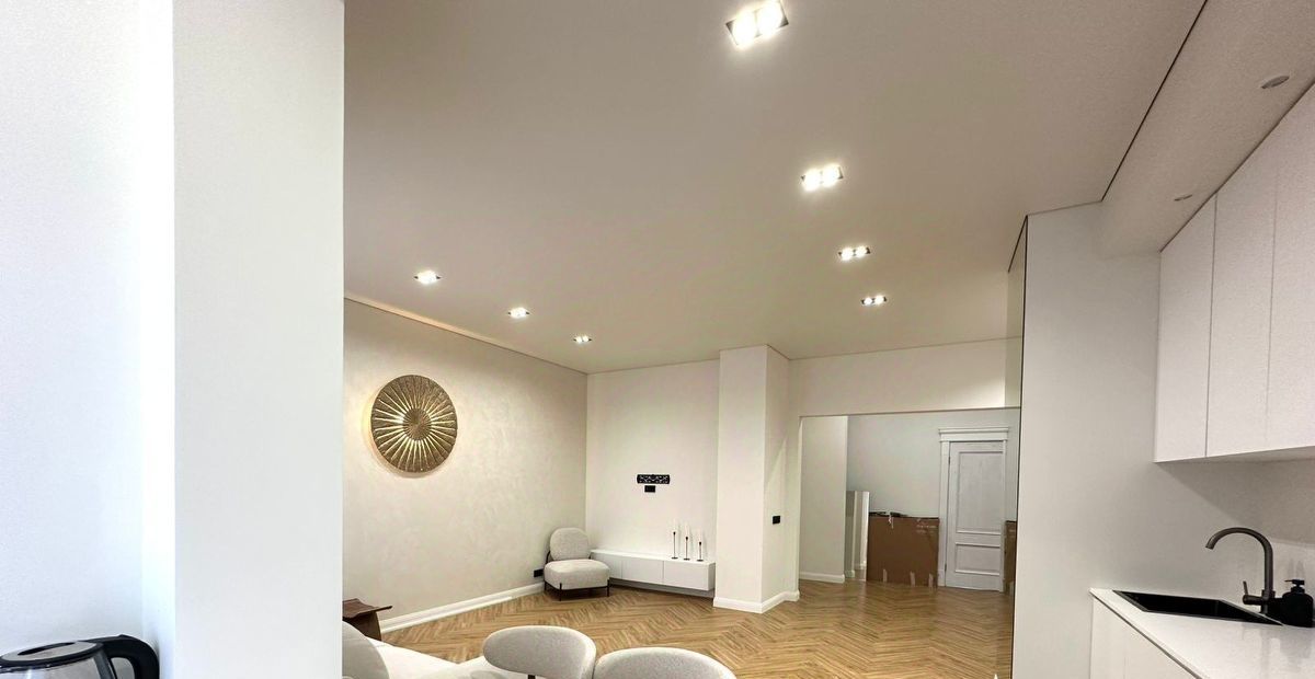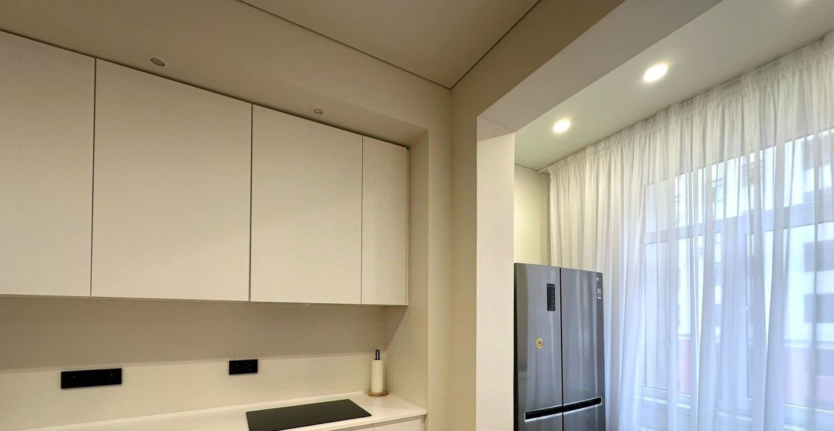 -Кухня: Большая, светлая кухня, идеально подходящая для приготовления пищи и приема гостей. Вмещает полноценную обеденную зону и современный кухонный гарнитур. На днях привезут большой дизайнерский стол и повесят телевизор.