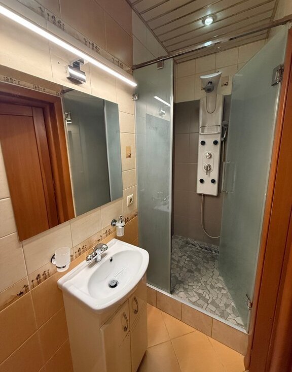 Есть 2 лоджии и 1 балкон. Два санузела (Ванная + туалет и душевая кабинка + туалет). Есть Гардеробная. Квартира расположена на 7 этаже 7 этажного кирпичного дома, сверху полноценный тех.этаж.