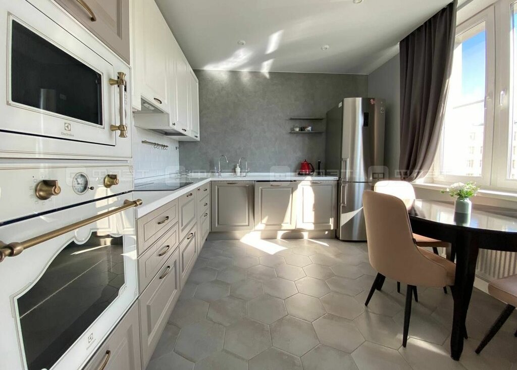 Жильцам предоставляется из мебели: кухонный гарнитур, диван раскладной, кровать, кресло, шкаф-купе, гардеробная, cтол, стулья. Из техники: холодильник, варочная панель, микроволновая печь, духовка, чайник, посудомоечная машина, стиральная машина, ЖК телевизор, кондиционер.