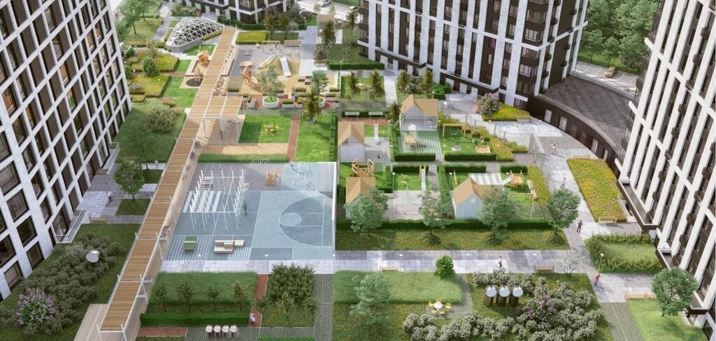 Двор: закрытая территория, детская и спортивная площадки