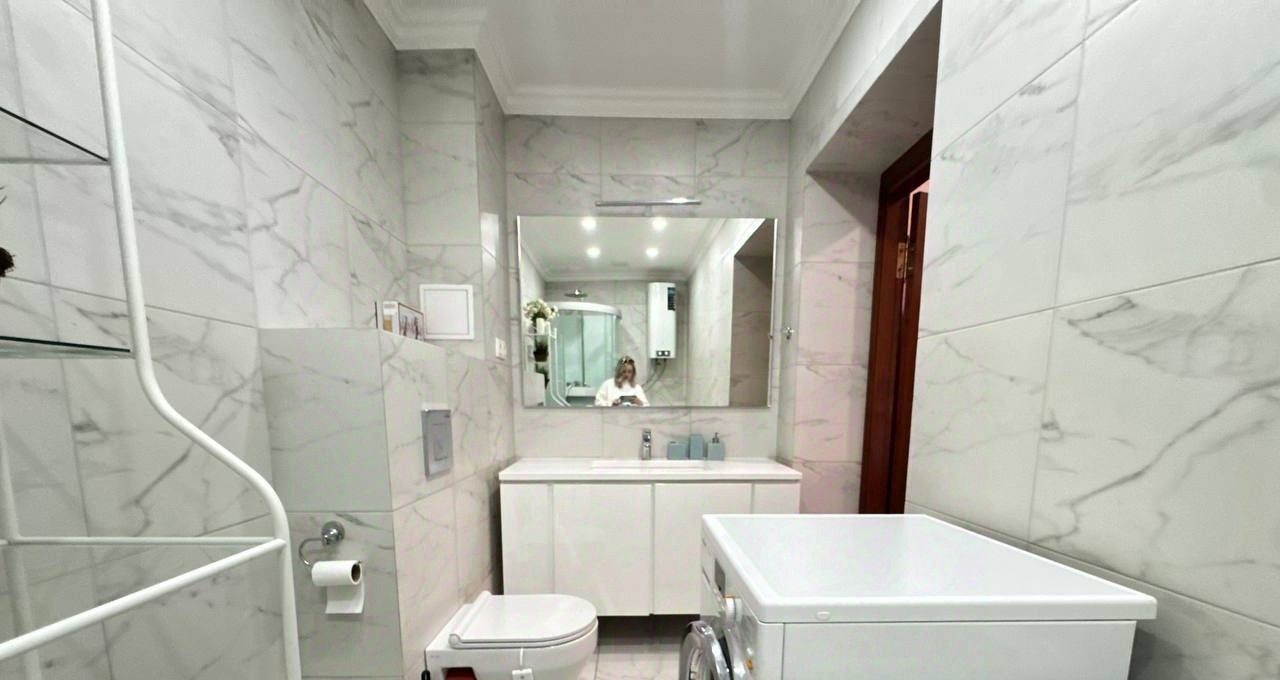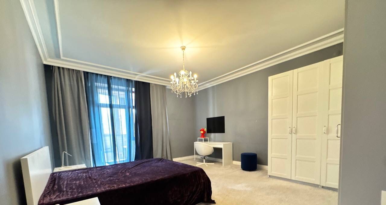 Квартира с дизайнерским ремонтом, оборудована всем необходимым для комфортного проживания. В комнатах и на кухне есть мебель, а также современная техника: кондиционер, холодильник, телевизор, стиральная и посудомоечная машины. В ванной комнате установлены ванна и душевая кабина. Две лоджии и один балкон позволяют наслаждаться свежим воздухом и панорамными видами.