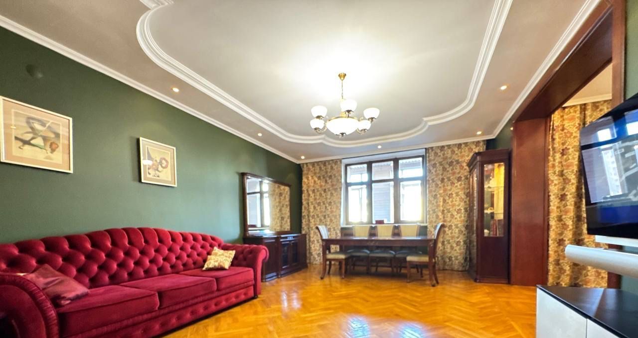 Сдаётся просторная четырёхкомнатная квартира площадью 153 кв. м. на третьем этаже девятиэтажного кирпичного дома. Высота потолков — 3 метра, что придаёт помещению особую атмосферу простора и света. Дом построен в 2000 году и расположен в 19 минутах пешком от метро "Суконная слобода".