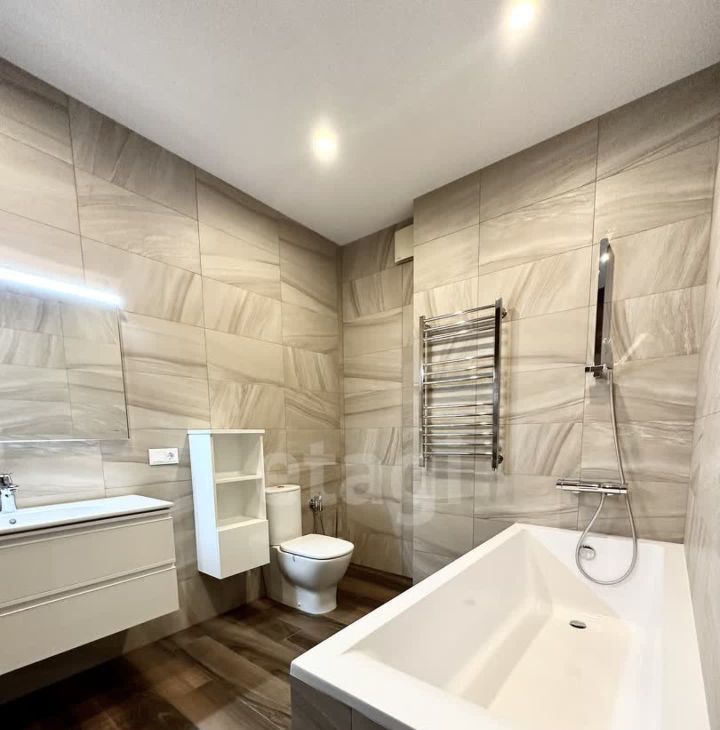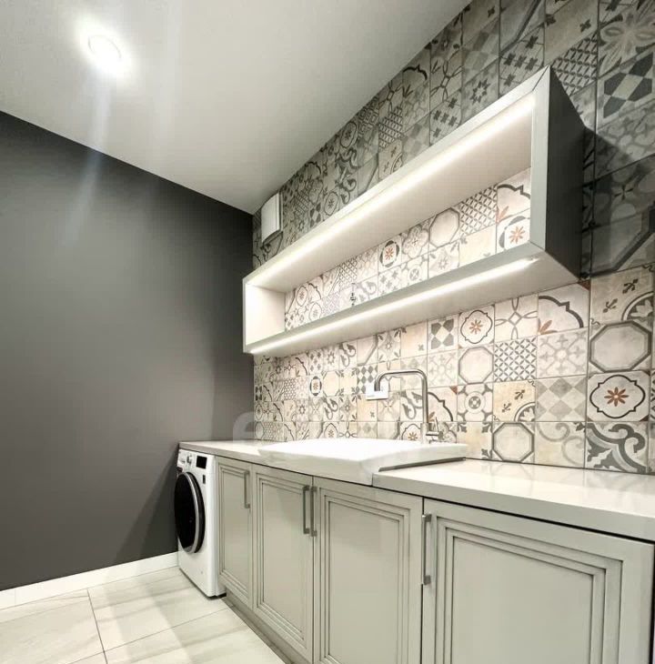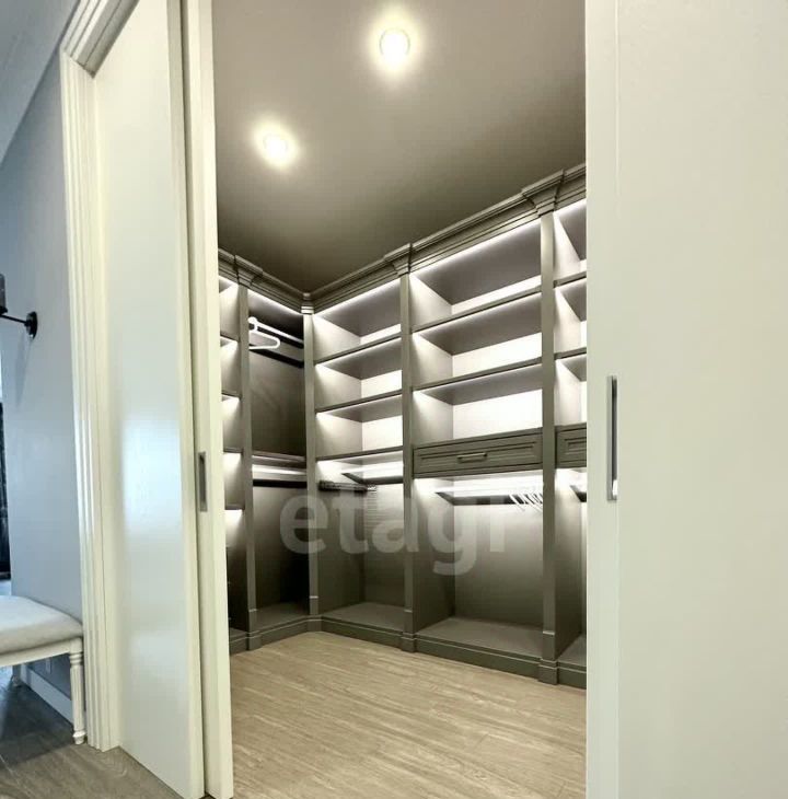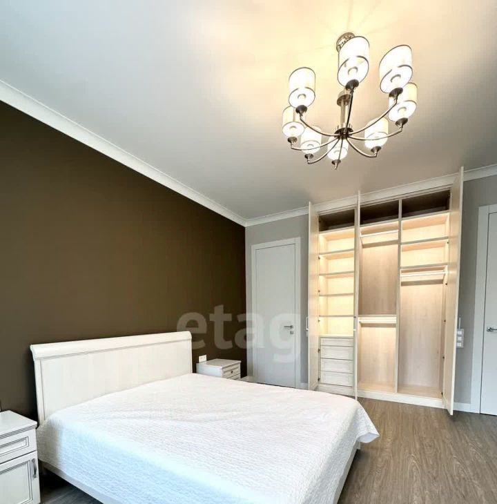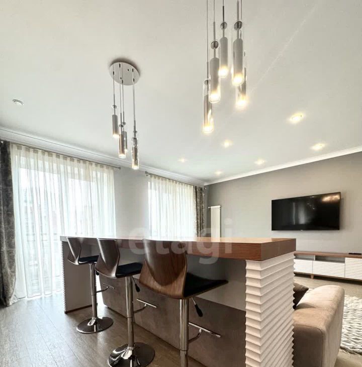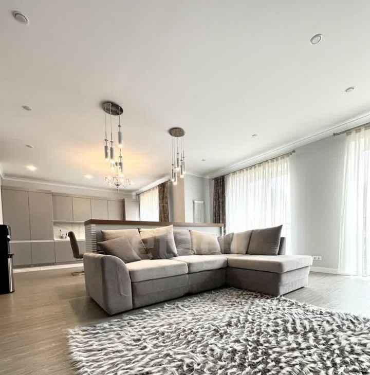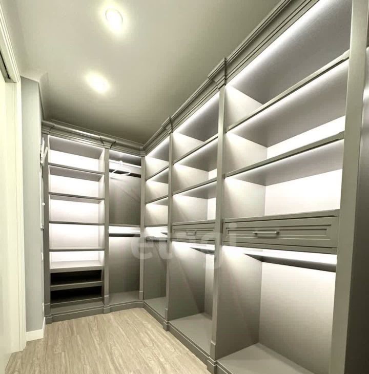 В квартире имеется вся необходимая техника и мебель. Две Спальни с 2х спальной кроватью, комната кабинет с диваном. Кухня с залом совмещены, телевизор мега огромный, в зале панорамные окна, дорогая мебель и техника, 3 сан узла, (в 2х спальнях, 1 гостевой), прачечная, и огромная гардеробная комната .