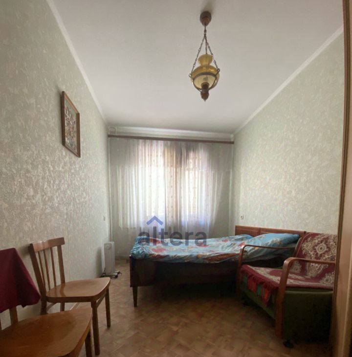 В комнате есть всё необходимое: большая кровать, кресло и вместительный шкаф! Общая кухня и ванная для совместного проживания.