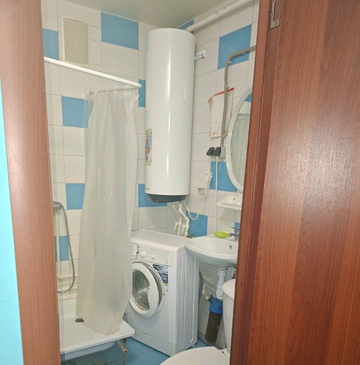 Стиральная машина в санузле. Комната закрывается на ключ.