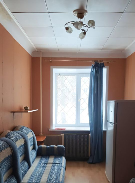 комната в 5ти комнатной коммунальной квартие.В комнате имеется диван,шкаф ,тумбы,холодильник.Кухня,туалет,душевая общие.В местах общего пользования поочередное дежурство.Рядом с домом общественный транспорт в любую точку города.Почти Центр.До метро мин.10 спокойным шагом.