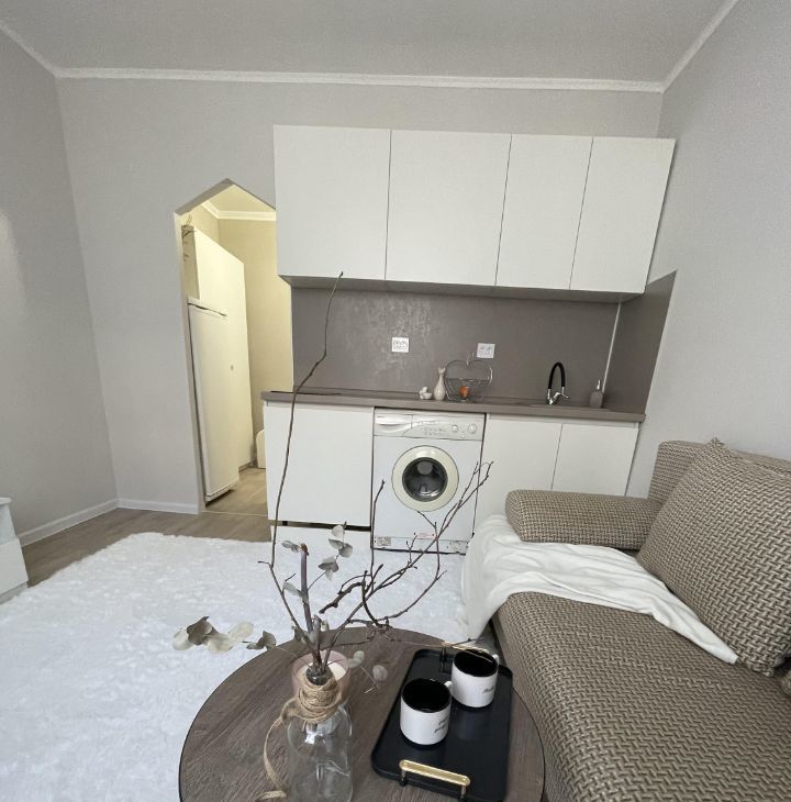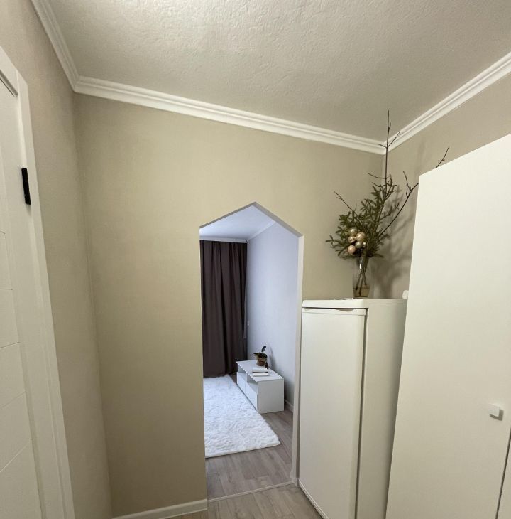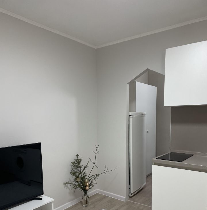 В квартире сделан современный евроремонт. Здесь есть все необходимое для комфортного проживания: мебель в комнате, холодильник и стиральная машина. Санузел совмещенный и оснащен душевой кабиной. Планировка квартиры продумана до мелочей, поэтому можно использовать пространство максимально эффективно.
