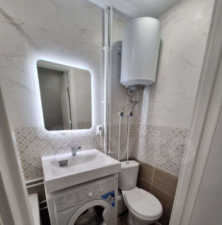 Сдаю уютную студию. В квартире выполнен евроремонт. В комнате: раскладывающийся диван, стол, кухонный гарнитур, холодильник, варочная панель; в совмещенном санузле - стиральная машина, водонагреватель.