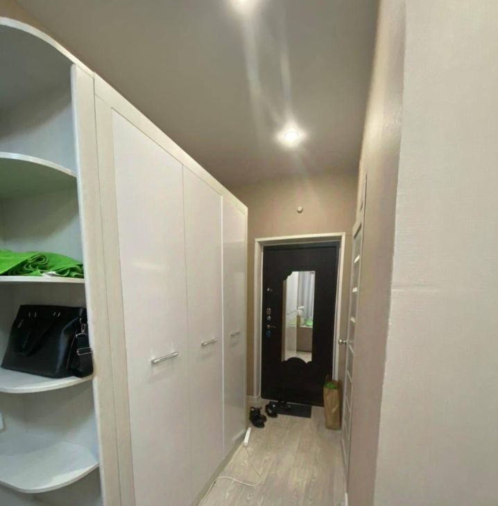 Кухни на данный момент полноценной нет, есть плитка, маленький холодильник, идеально для тех кто дома не готовит, есть микроволновая печь. Диван раскладывается, балкон большой, места для хранения хватает, дополнительную комплектацию квартиры обсудим.