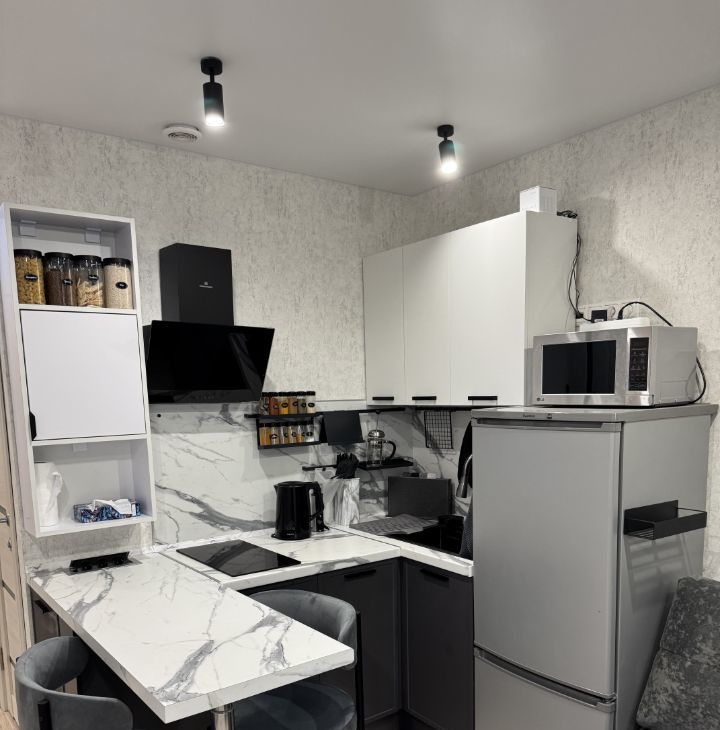 21 кВ, все индивидуально, санузел, кухня, все свое. Все новое. Вся мебель(анатомический диван, вытяжка, холодильник, стиралка, микроволновка, шкафы) все остается новым хозяевам.