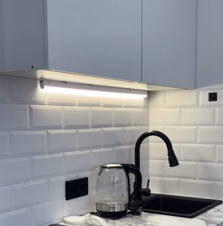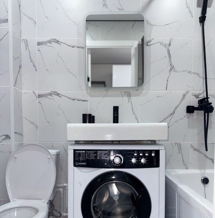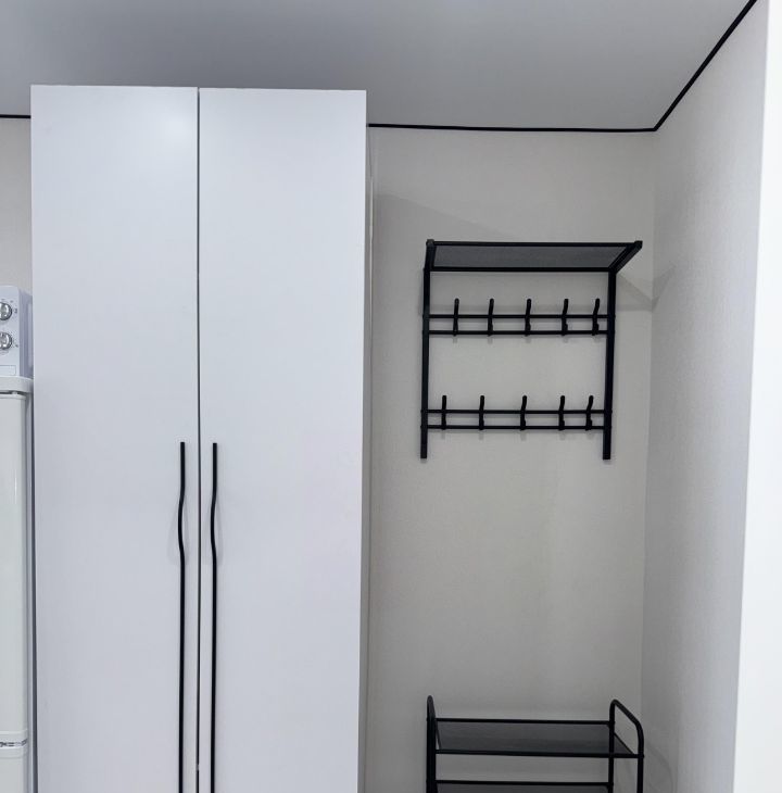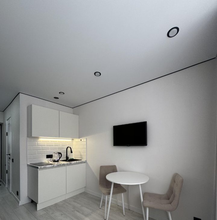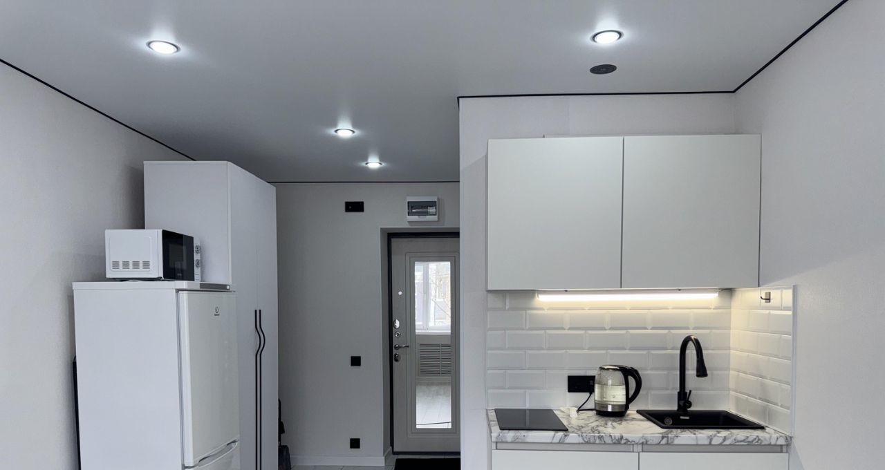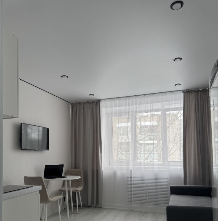 В студии имеется раскладной диван, вместительный шкаф, новый кухонный гарнитур с варочной панелью, микроволновая печь, холодильник, телевизор со смарт тв, стиральная машина, оборудованная ванная комната и робот-пылесос. Квартира полностью укомплектована, можем обсудить необходимые условия