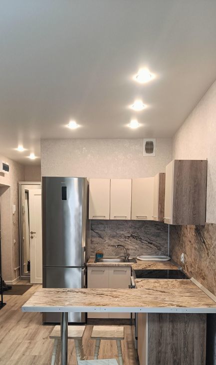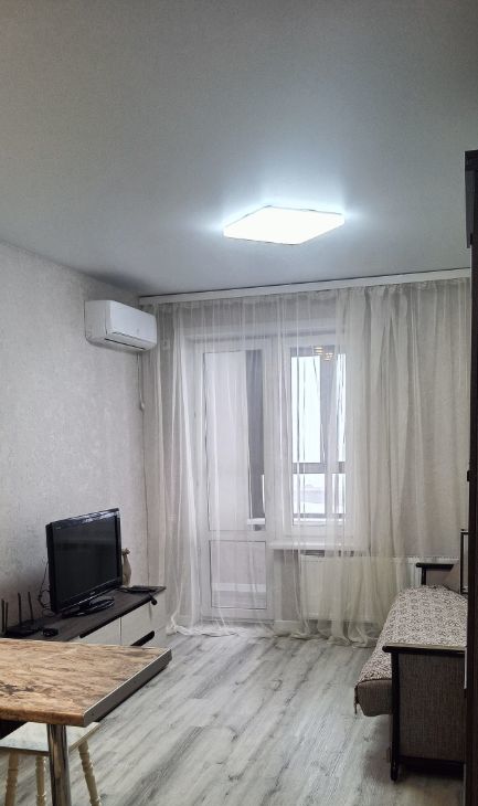 Сдаётся студия на 11 этаже монолитно-кирпичного дома 2024 года постройки. В квартире выполнен свежий евро ремонт. На кухне современная техника: холодильник, плита, духовой шкаф, электрический чайник, имеется посуда. Установлен кондиционер и телевизор. Имеются гладильная доска и сушилка напольная. Квартира светлая, зимой теплая, летом прохладная благодаря кондиционеру.