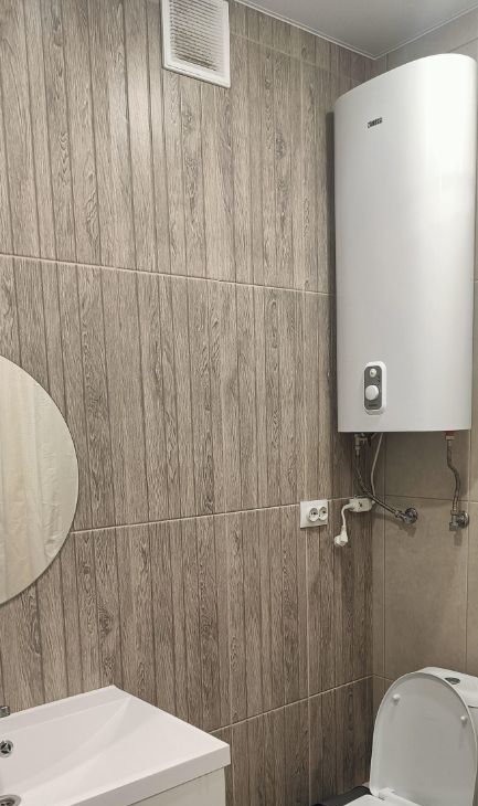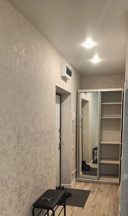 Санузел совмещённый, оборудован ванной, стиральной машиной и водонагревателем. Из мебели — вместительный шкаф, диван и шкаф-купе в прихожей. Лоджия застеклена, можно использовать как дополнительное пространство. Свежий ремонт.