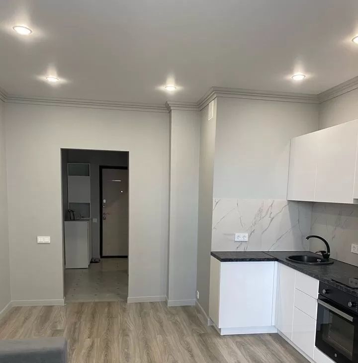 В квартире сделан качественный евроремонт. Пространство студии обставлено мебелью, которая есть как на кухне, так и в жилой зоне, что создает атмосферу уюта и комфорта. В ванной комнате установлена современная душевая кабина. В квартире есть вся необходимая бытовая техника: холодильник и стиральная машина. Высокоскоростной интернет подключен, поэтому можно работать и развлекаться без ограничений.