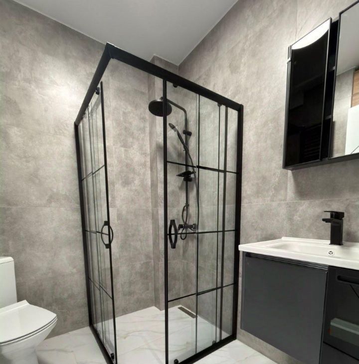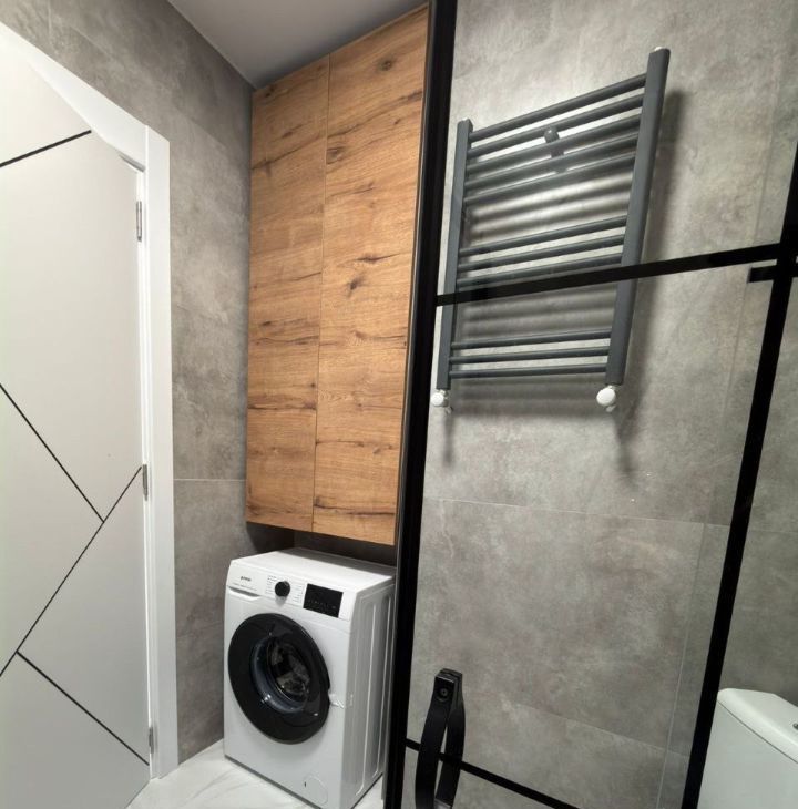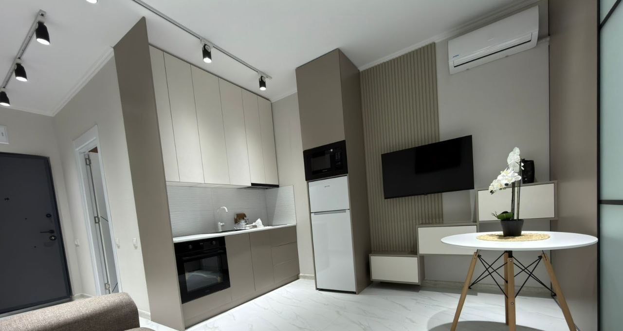 Квартира полностью меблирована и оборудована всей необходимой техникой для комфортного проживания: кондиционер, холодильник, телевизор, свч, электрическая плита и духовой шкаф, стиральная машина, диван, кровать, большое хранение места для одежды. Совмещенный санузел с душевой кабиной.