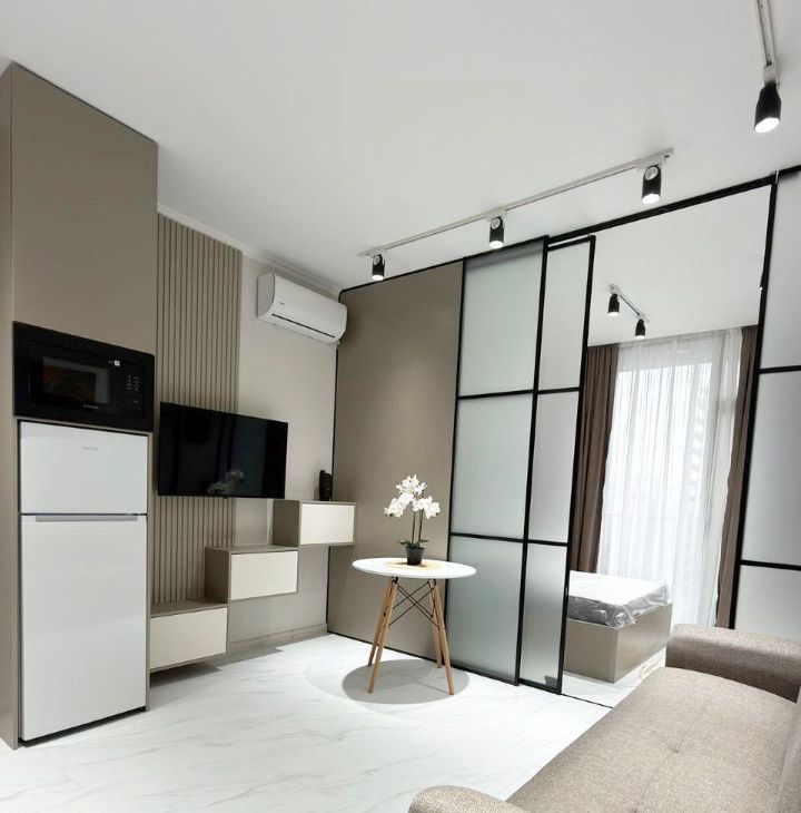 Сдаётся уютная изолированная студия с дизайнерским ремонтом в современном доме.