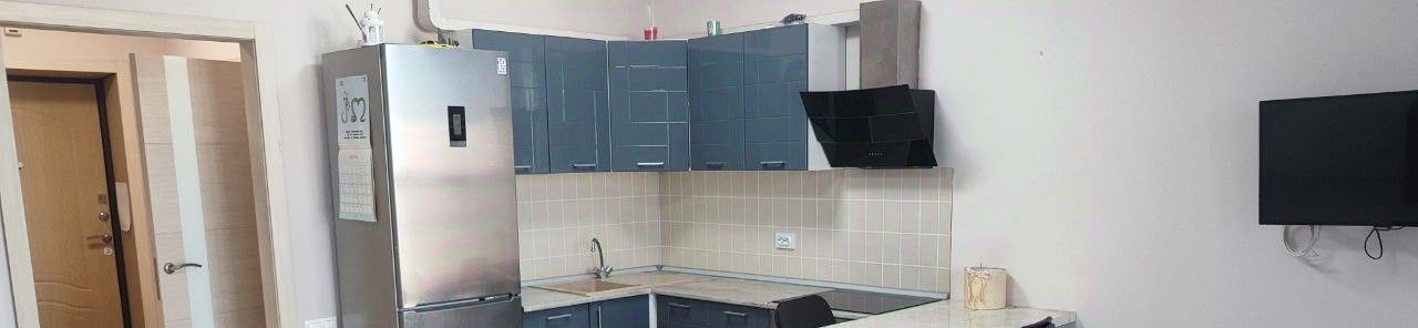 В студии выполнен евроремонт, что придаёт помещению современный и стильный вид. В комнате и на кухне есть вся необходимая мебель. Из техники в вашем распоряжении кондиционер, холодильник, телевизор и стиральная машина. Ванная комната оснащена ванной, где можно расслабиться после рабочего дня. Также есть балкон, на котором приятно проводить время.