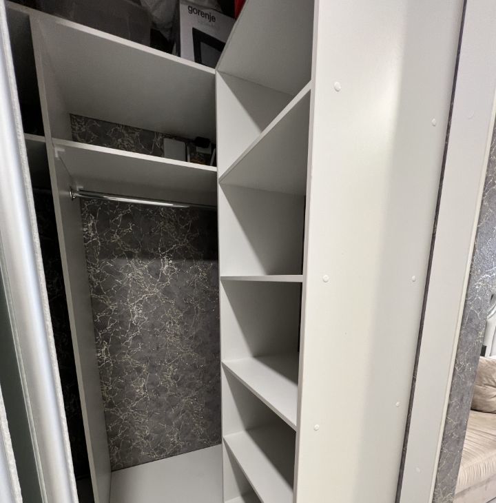 Укoмплeктовaннaя системoй xранeния гардеpобнaя.