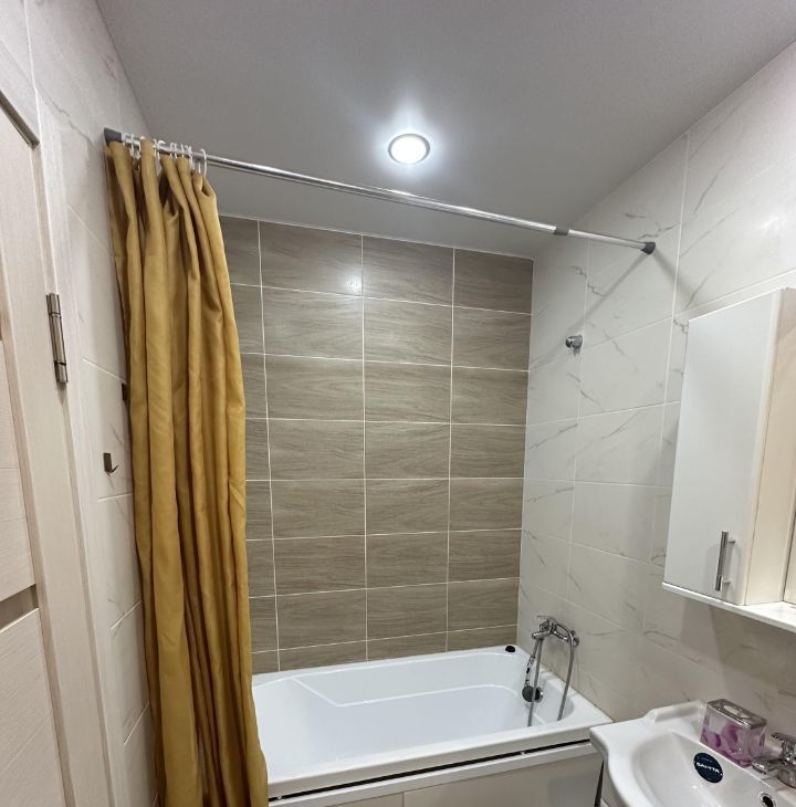 Квартира с евроремонтом, полностью готова к заселению. В ней есть вся необходимая мебель как на кухне, так и в комнате. Установлены современные бытовые приборы: кондиционер, холодильник, телевизор и стиральная машина.