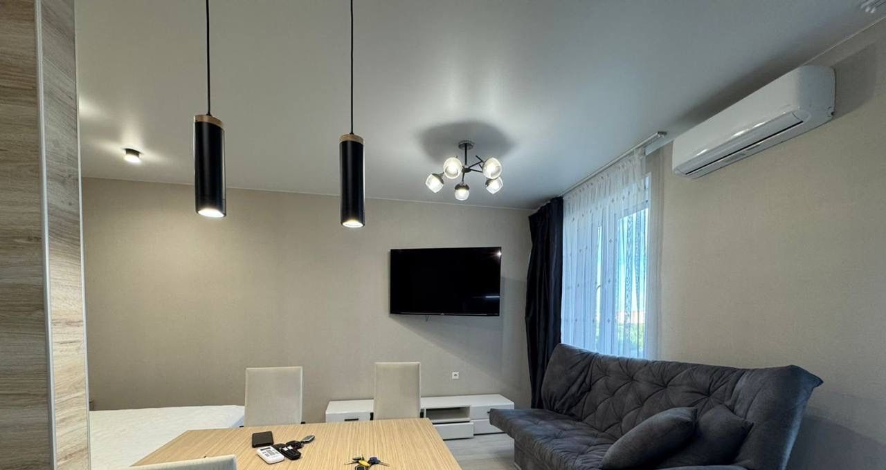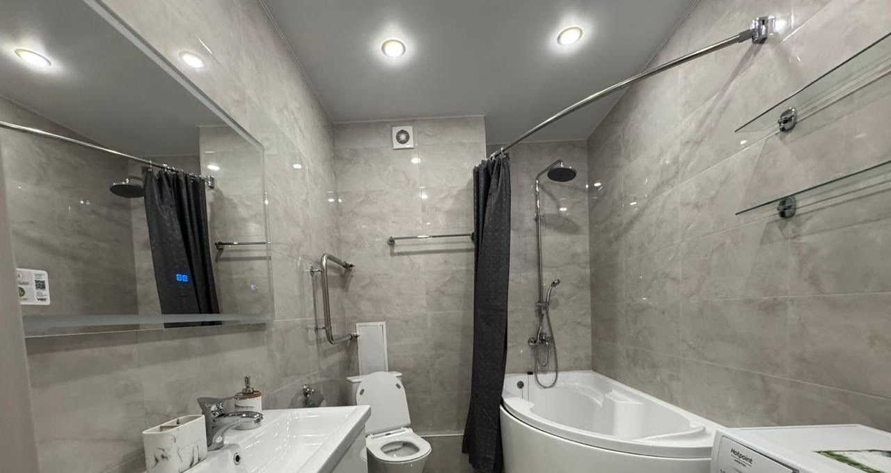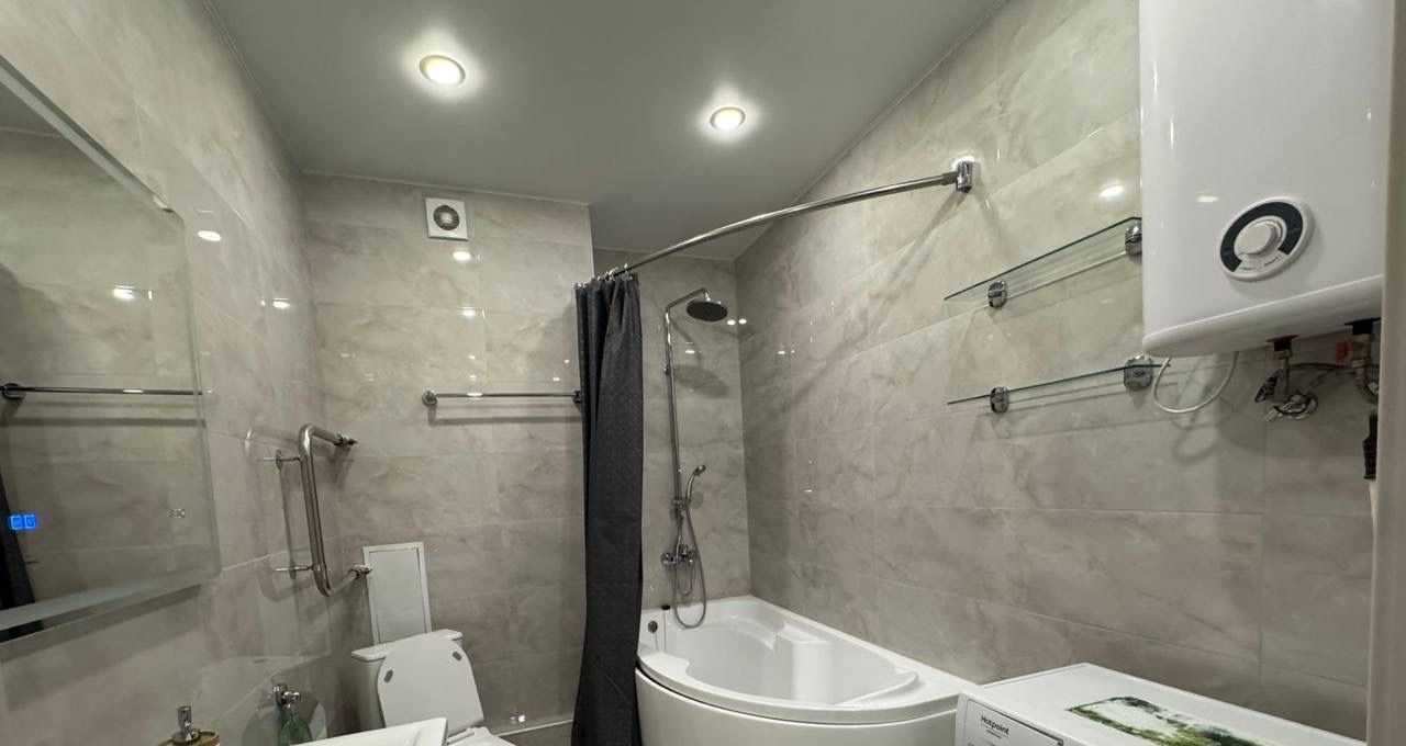Квартира светлая и современная, с качественным ремонтом. В ней есть вся необходимая мебель и техника для комфортного проживания: удобный диван-кровать, обеденный стол, шкаф для одежды, телевизор, холодильник и стиральная машина. В санузле уложена плитка, установлена душевая кабина. Высокие потолки 2.7 метра добавляют пространства и света.