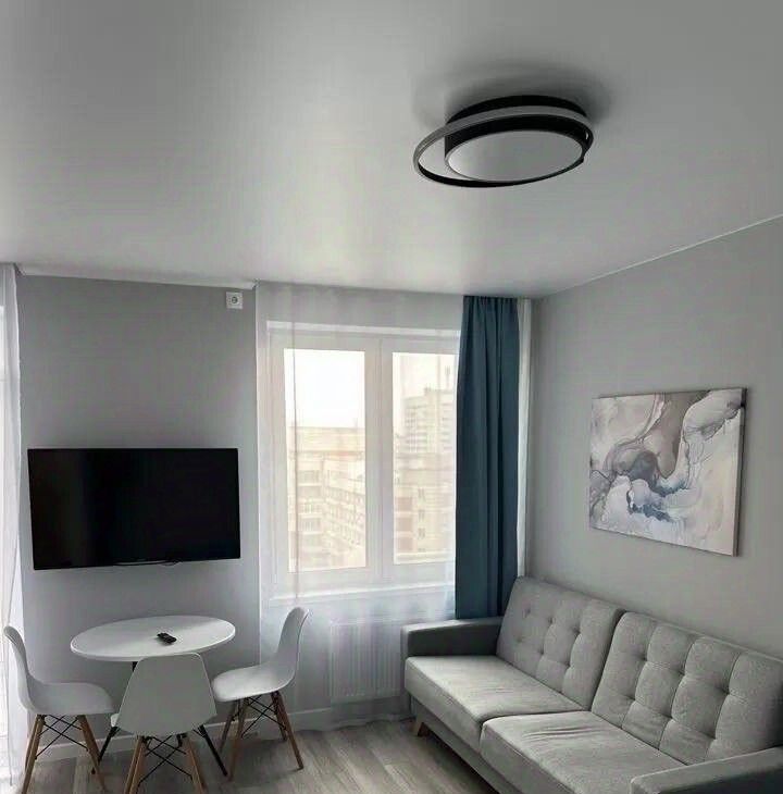 Всё продумано для комфортного проживания. Состояние: Квартира в отличном состоянии. Чисто, светло, свежий ремонт в нейтральных тонах. Мебель и техника: Полностью укомплектована всем необходимым для жизни: Кухня: гарнитур, варочная панель, духовой шкаф, вытяжка, холодильник, стиральная машина, микроволновая печь, электрочайник. Комната: удобная двуспальная кровать и диван, шкаф для одежды, обеденный стол, стулья, телевизор. Санузел: современная сантехника, ванна, полотенцесушитель.