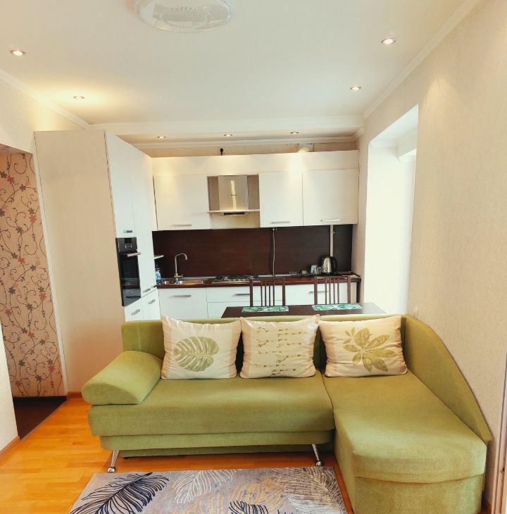 Светлая и просторная квартира-студия от собственника расположена в современном кирпичном доме с охраняемой территорией, находится близко к центру Казани. До парка Горького 15 минут пешком. Индивидуальное отопление. Квартплата невысокая. В любое время года можно настроить комфортную для вас температуру. Всегда есть горячая вода. Квартира полностью меблирована: двуспальная кровать 180х200 с удобным матрасом, диван-кровать, 2 вместительных шкафа, большой комод, обеденный стол, стулья, кухонный гарнитур, обувница. Есть стиральная машина, холодильник, духовка, варочная панель, электрочайник, утюг, гладильная доска, сушилка для белья. Очень красивый вид из окна, в посадке поют соловьи. Спокойные соседи. Окна выходят на тихую зелёную улицу. В шаговой доступности: детские сады, школы, поликлиники, магазины "Магнит", "Пятерочка", пекарни, аптеки, павильоны со свежими овощами и фруктами. Отличная транспортная развязка. Комиссии при заселении нет.